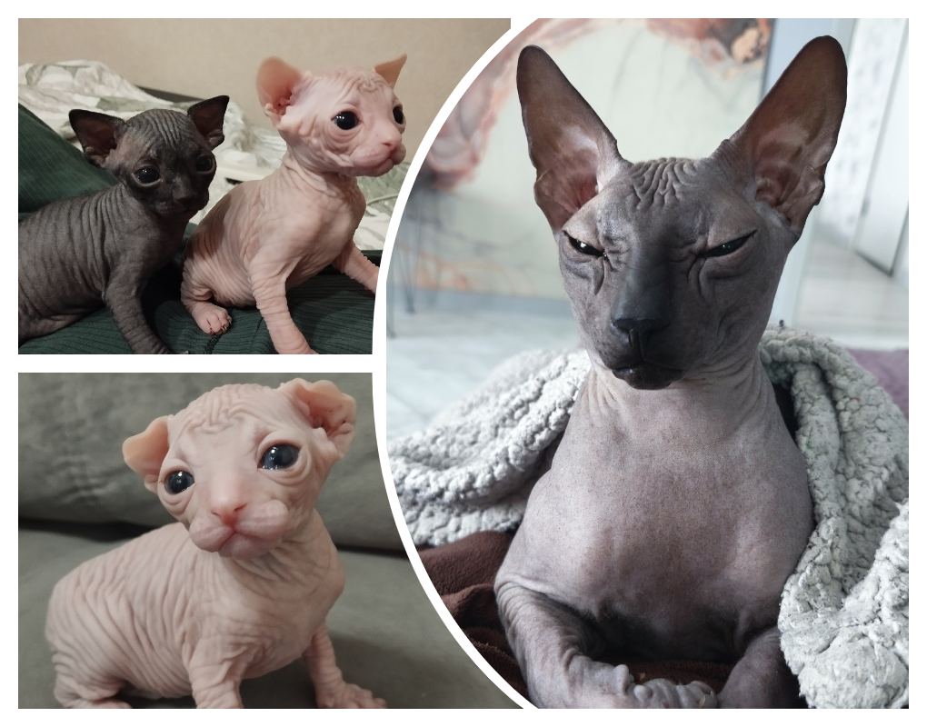 Герои фотоленты — кошки пород донской и канадский сфинкс — демонстрируют свои лучшие стороны: от трогательных моментов нежности в уютных домиках до поистине царственных и даже «злых» поз.