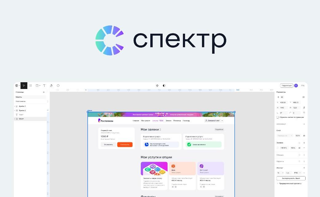 Компания «Ростелеком» приступила к закрытому бета-тестированию графического редактора «Спектр». Это первый российский аналог «Фигма» — популярного инструмента для дизайна интерфейсов, сайтов, презентаций и маркетинговых материалов. Об этом сообщил директор по развитию цифровых технологий «Ростелекома» Роман Хазеев на АКПО-Конф 2026.