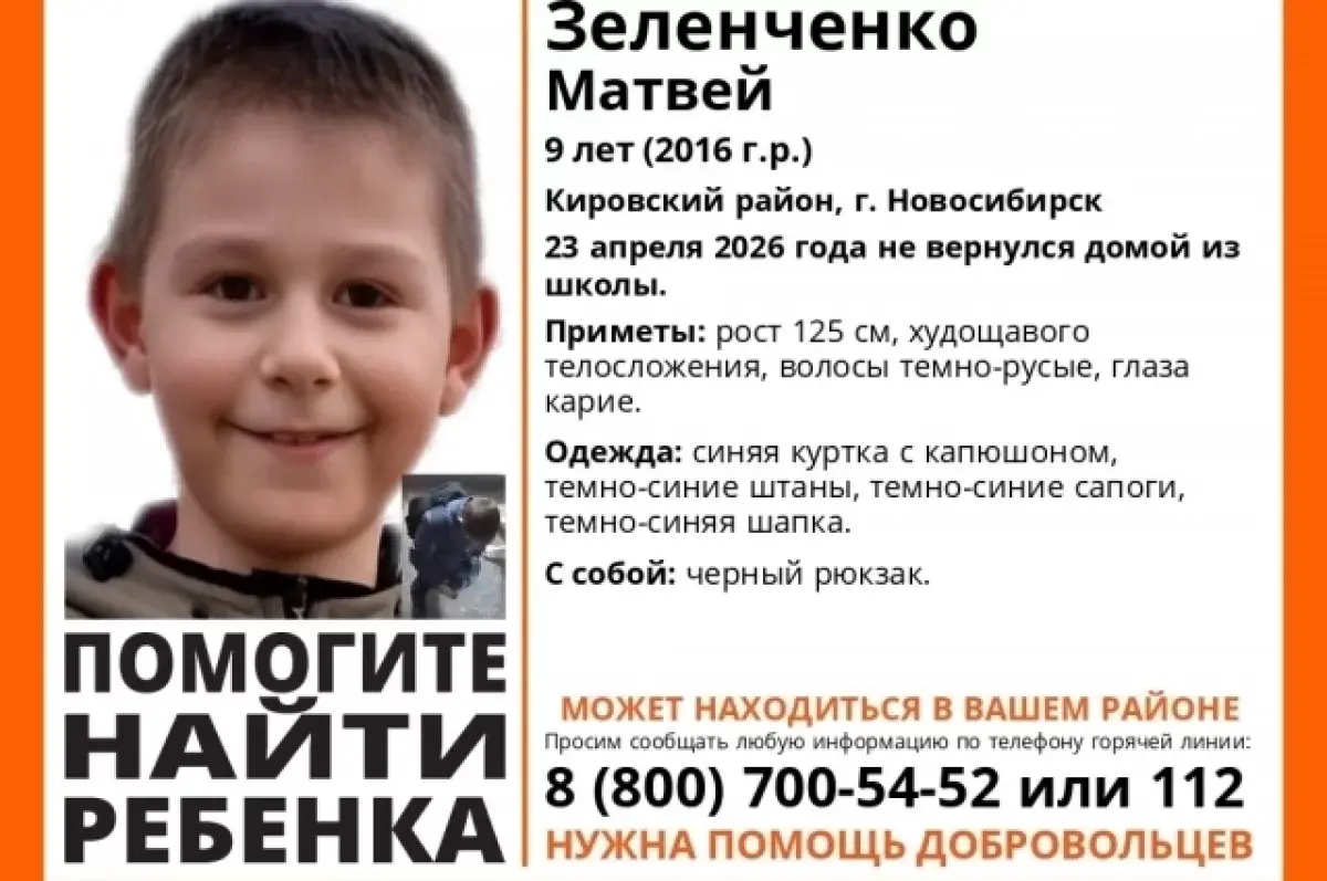 В Новосибирске объявили поиски девятилетнего мальчика, который не вернулся домой после школы.